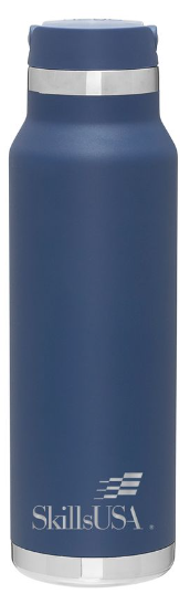 - Product Description: This navy blue tumbler is laser engraved with the SkillsUSA logo at the bottom of the bottle.