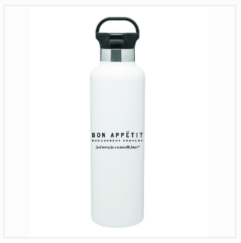- Product Description: White stainless steel thermal bottle w/ Bon Appetit logo and vacuum seal lid.