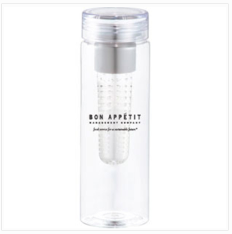 - Product Description: Clear infuser bottle w/ gray infuser and Bon Appetit logo.