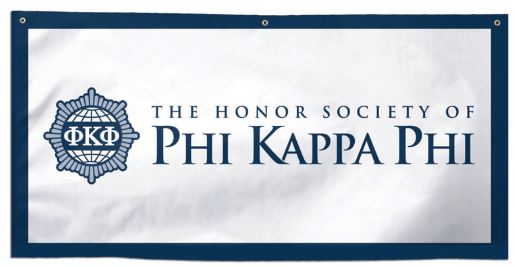 - Product Description: 3′ x 6′ Nylon banner w/ Phi Kappa Phi logo and a blue border.