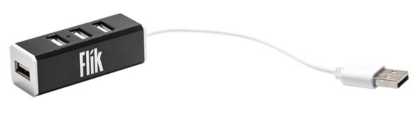 - Product Description: 4-port high speed USB connects to multiple power sources at once. Flik logo printed on middle of device. Sold in packs of 6.