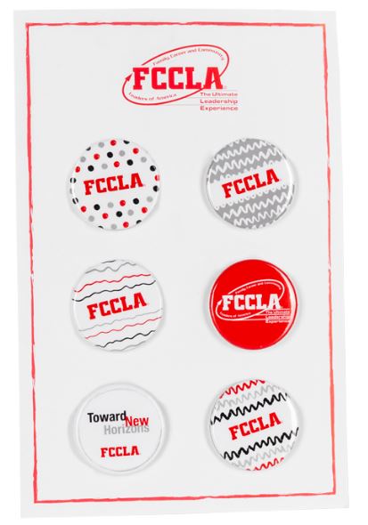 - Product Description: Pack of 6 FCCLA buttons, each w/ a different design. Buttons are sized at 1.5″