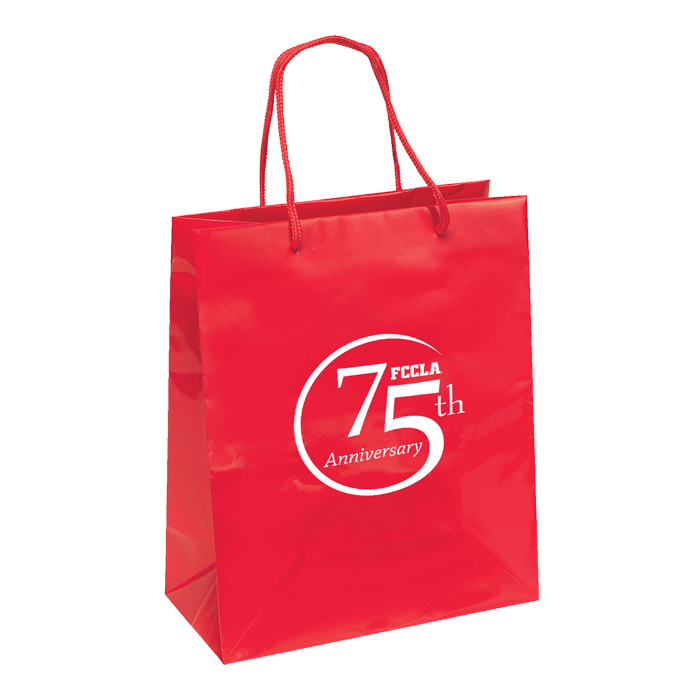 - Product Description: 12”x 10” x 7” Gift bag with 75th Anniversary logo and twine handles.