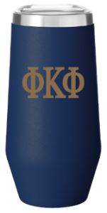 - Product Description: 9oz mini tumbler w/ steel top rim, plastic lid, and PKP greek letters printed on front center.