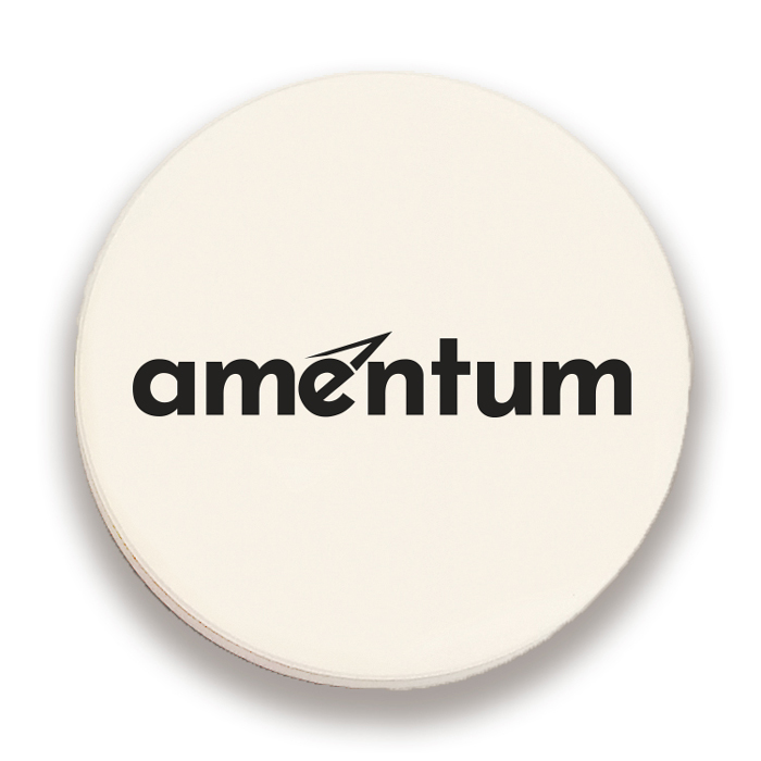- Product Description: White stone coaster w/ the Amentum logo in the middle.