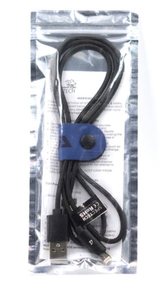 - Product Description: Meter long charging cable w/ “TSA” vinyl blue snap.