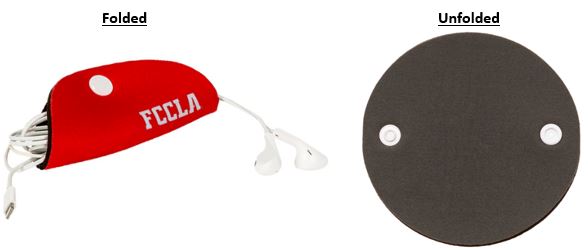 - Product Description: Microfiber cord organizer w/ snap button closure. Shaped like a circle when unfolded/not closed, taco-shaped when folded/snapped together.